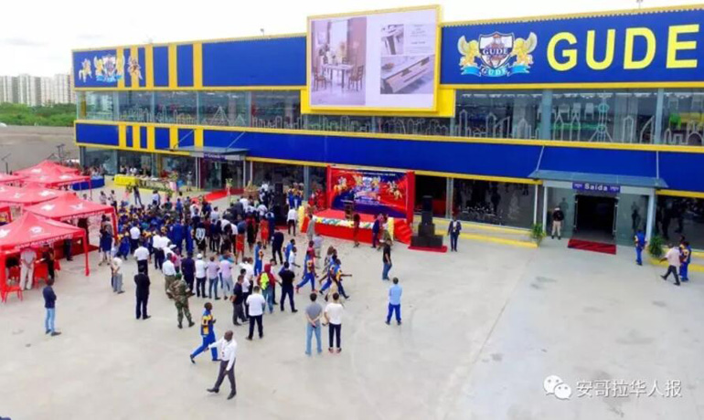 广德集团总经理赵彬在开业典礼上向本报记者介绍,大型综合卖场GUDE商城分为两层,营业面积14000平方米,建设采用欧洲标准,投资金额3000多万美元,基本涵盖了家居类所有产品,有样板间、灯饰区、儿童用品区、餐桌区、桌椅区等,产品质量上乘,均为中高端家居产品。是安哥拉单体面积最大的家具、家居销售的商场,后期还将建设餐饮区、住宿区等。