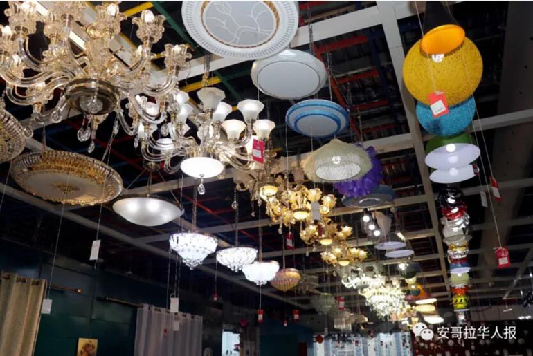 灯饰区内各种样式的灯具,晚上一通电极其漂亮。