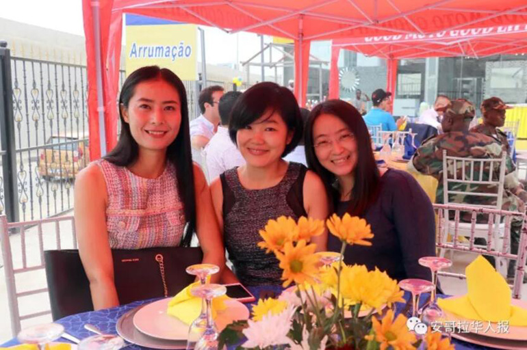 安哥拉中国妇女联合会会长刘桂英(左一)。